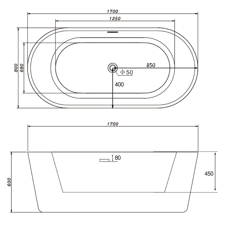 Акриловая ванна ABBER AB9209 170x80x60 купить
