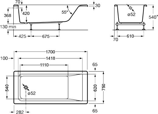 Акриловая ванна Roca Hall 170х75 ZRU9302768