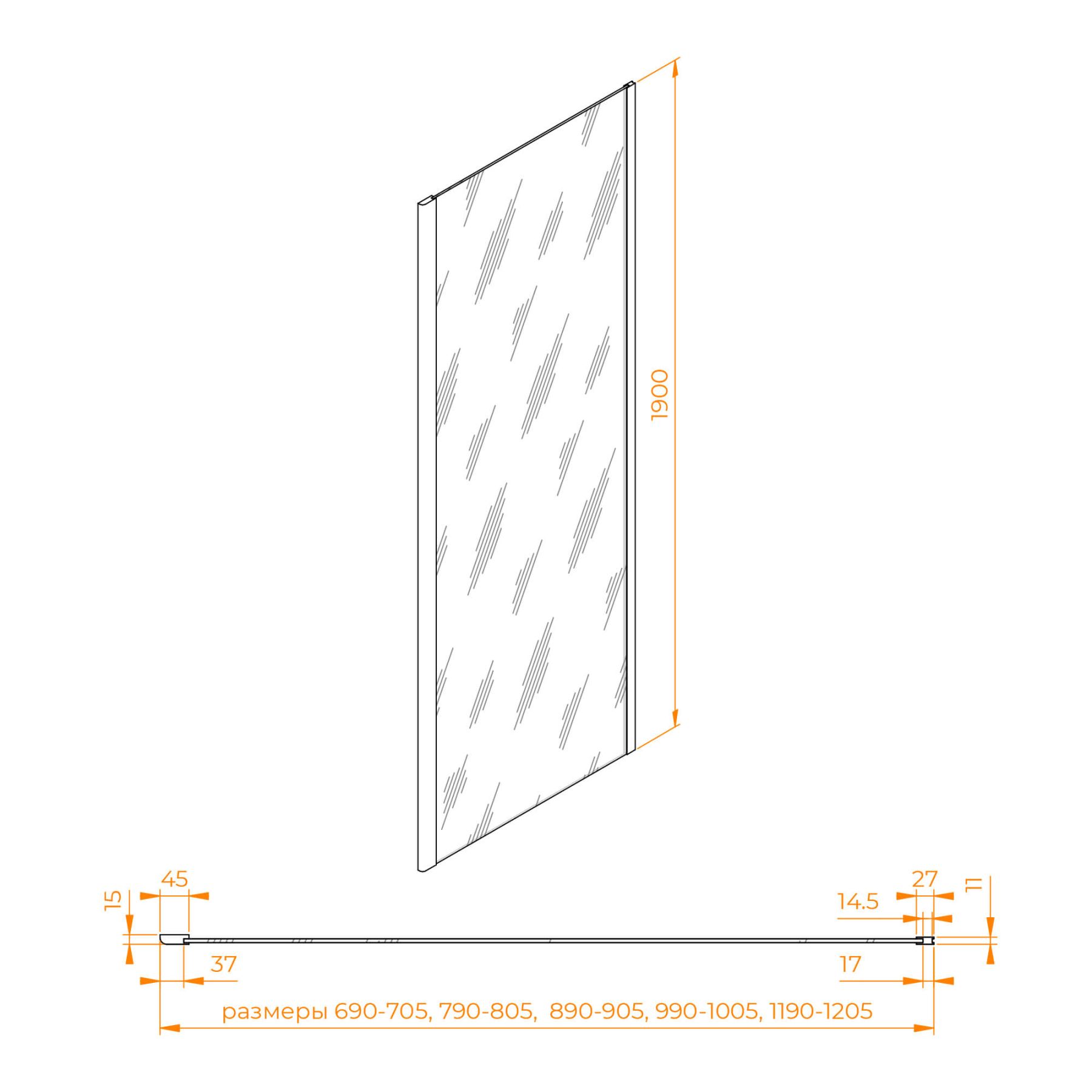 Комплектуется с моделями высотой 1900 мм и цветом профиля «хром»