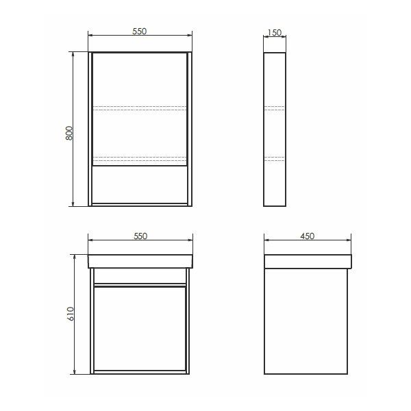 Высококачественное зеркальное полотно с амальгамой на основе серебра. Створка оснащена петлями с плавным закрыванием. Петли у створки снаружи. За зеркальной створкой одна горизонтальная полка, в пространстве открытого хранения - две. Зеркало-шкаф универсально - может быть подвешено в правом и левом варианте