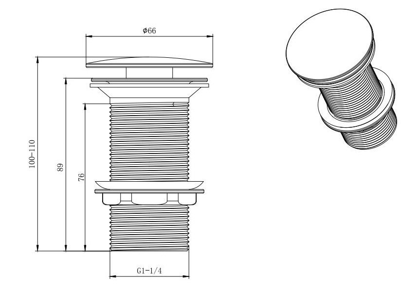 Донный клапан Aquatek AQ6000CR без перелива хром