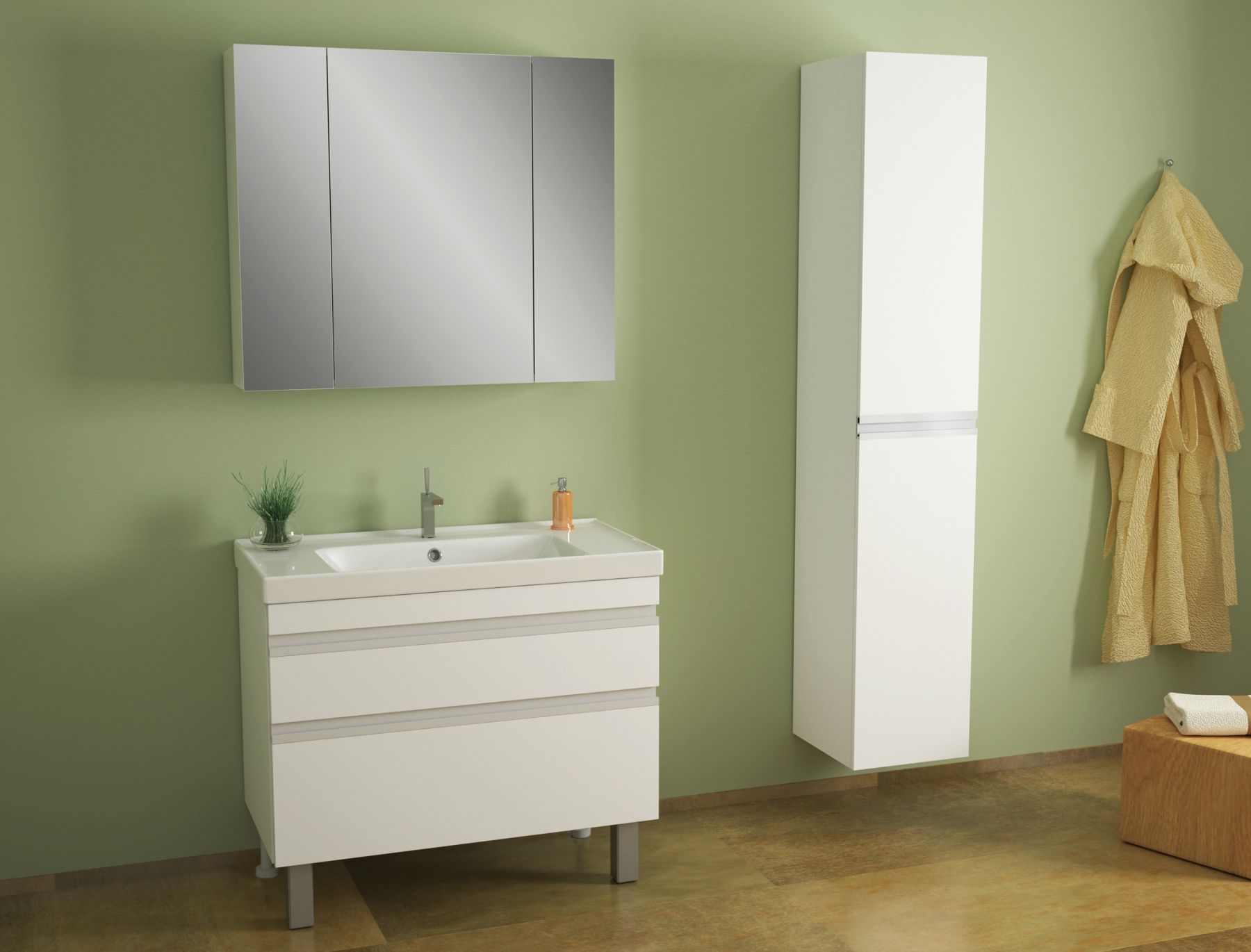 Коллекция Grace Plus под новый керамический умывальник Grace 60/70 см. Модель имеет два ящика – верхний оснащен встроенным органайзером.