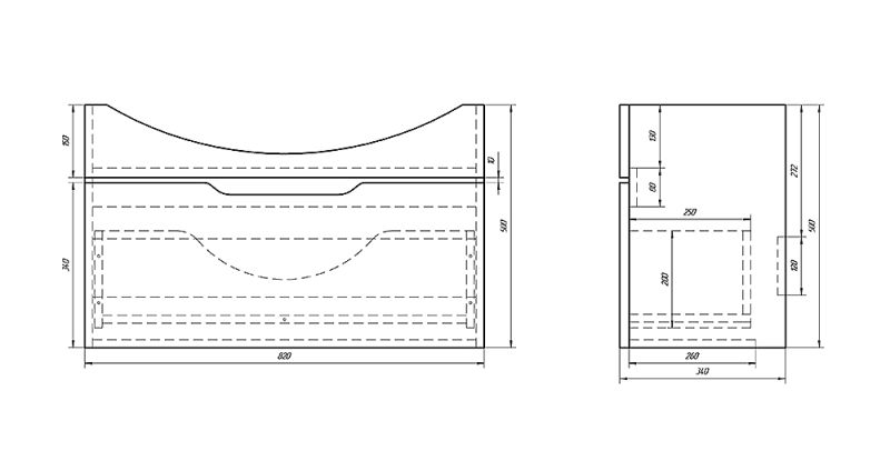 Подвесная классическая коллекция в 4-х размерах 65, 75, 85, 105 Лаконичный дизайн, глянцевая поверхность фасада, механизмы Hettich. Небольшая глубина тумбы органично впишется в любую, даже небольшую ванную комнату. Глубокий ящик