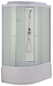 EcoStyle – это линейка душевых кабин, которая включает в себя соотношение цены и качества, доступность и простоту. Разработана на основании пожеланий наших клиентов. Эти душевые кабины не оснащены дополнительными функциями, что делает их более доступными по стоимости."поддон высокий 50см фронтальные стекла матовые фактурные центральная панель пластик белый алюминиевый профиль регулируемые ролики белые ручки для дверей 2-х режимный смеситель ручная лейка верхняя лейка «тропический душ» слив с сифоном, полочка "