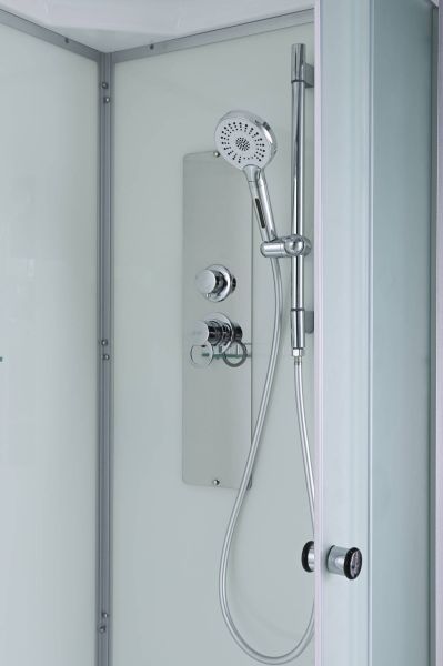 Стильная душевая кабина AvaCan D3012R сочетает в себе высокую функциональность, практичность и надежность. При изготовлении применяется безопасное закаленное стекло толщиной 4 мм (матовое), надежно фиксируемое алюминиевым профилем. Сборка без силикона (увеличивает срок службы), внутренняя сборка (облегчает установку и ревизию, позволяет установить душевую кабину в ограниченном пространстве),смеситель резьбовой (без хомутов), съемный экран поддона (позволяет осуществлять ревизию сифона), цвет профиля матовый хром. Двойные металлические ролики дверей (увеличивают срок службы).В комплекте : душевая штанга, полочка, тропический (верхний) душ, арома-лейка с витамином С (картридж съемный).