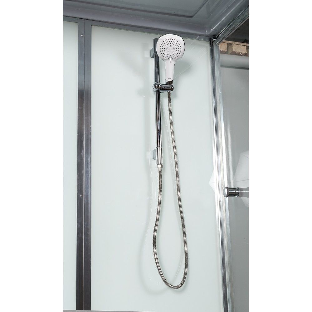 Вместительная душевая кабина Deto V150 имеет габаритные размеры 150 на 85 см и прямоугольную форму. Акриловый поддон высотой 58 см сможет заменить ванну. Кабина размещается вдоль стены. Для защиты от брызг имеются стеклянные стенки в алюминиевом профиле. Как и две распашные дверцы стенки выполнены из сверхпрочного закаленного стекла толщиной 6 мм. Они имеет антикальциевую обработку, поэтому на них не задерживаются загрязнения и налет.Для приёма водных процедур данная модель оборудована верхним тропическим душем, ручным душем с возможностью закрепить лейку на удобной высоте с помощью специальной штанги и тремя гидромассажными форсунками.