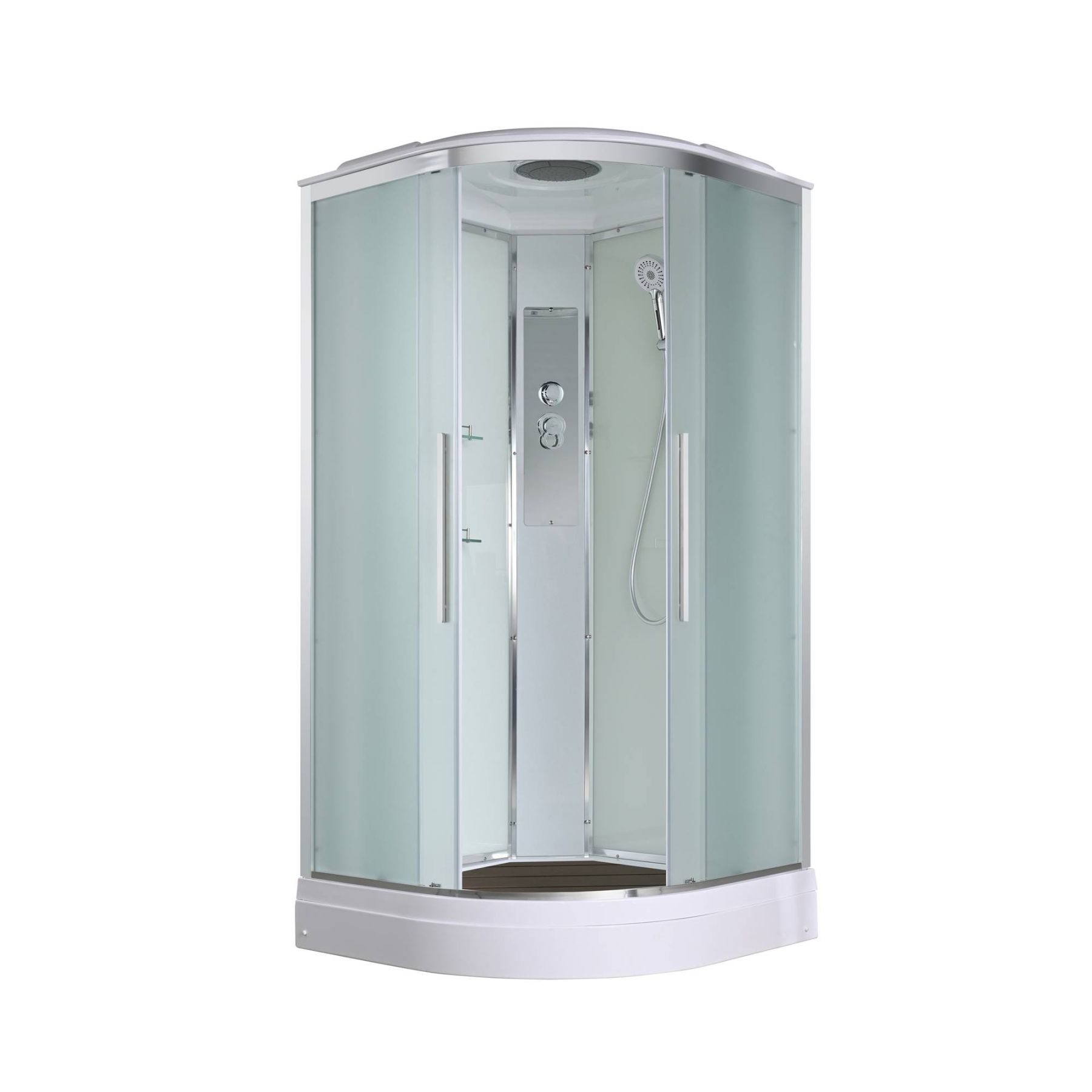 Стильная душевая кабина AvaCan EM2010 сочетает в себе высокую функциональность, практичность и надежность. При изготовлении применяется безопасное закаленное стекло толщиной 5 мм (матовое), надежно фиксируемое алюминиевым профилем. Сборка без силикона (увеличивает срок службы), внутренняя сборка(облегчает установку и ревизию; позволяет установить в ограниченном пространстве), смеситель резьбовой (без хомутов). Съемный экран поддона (позволяет осуществлять ревизию сифона). Цвет профиля  хром. Двойные металлические ролики дверей (увеличивают срок службы).В комплекте : душевая штанга, две полочки , тропический (верхний) душ, арома-лейка с витамином С (картридж съемный),полимерная вставка в поддон(имитация дерева),сифон, ручки дверей из нержавейки , двойные ролики .