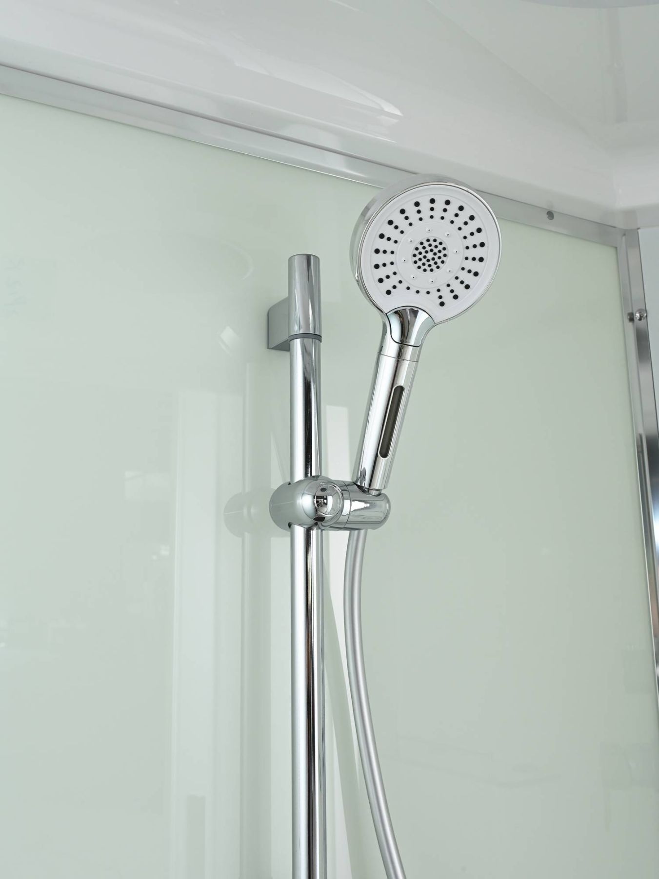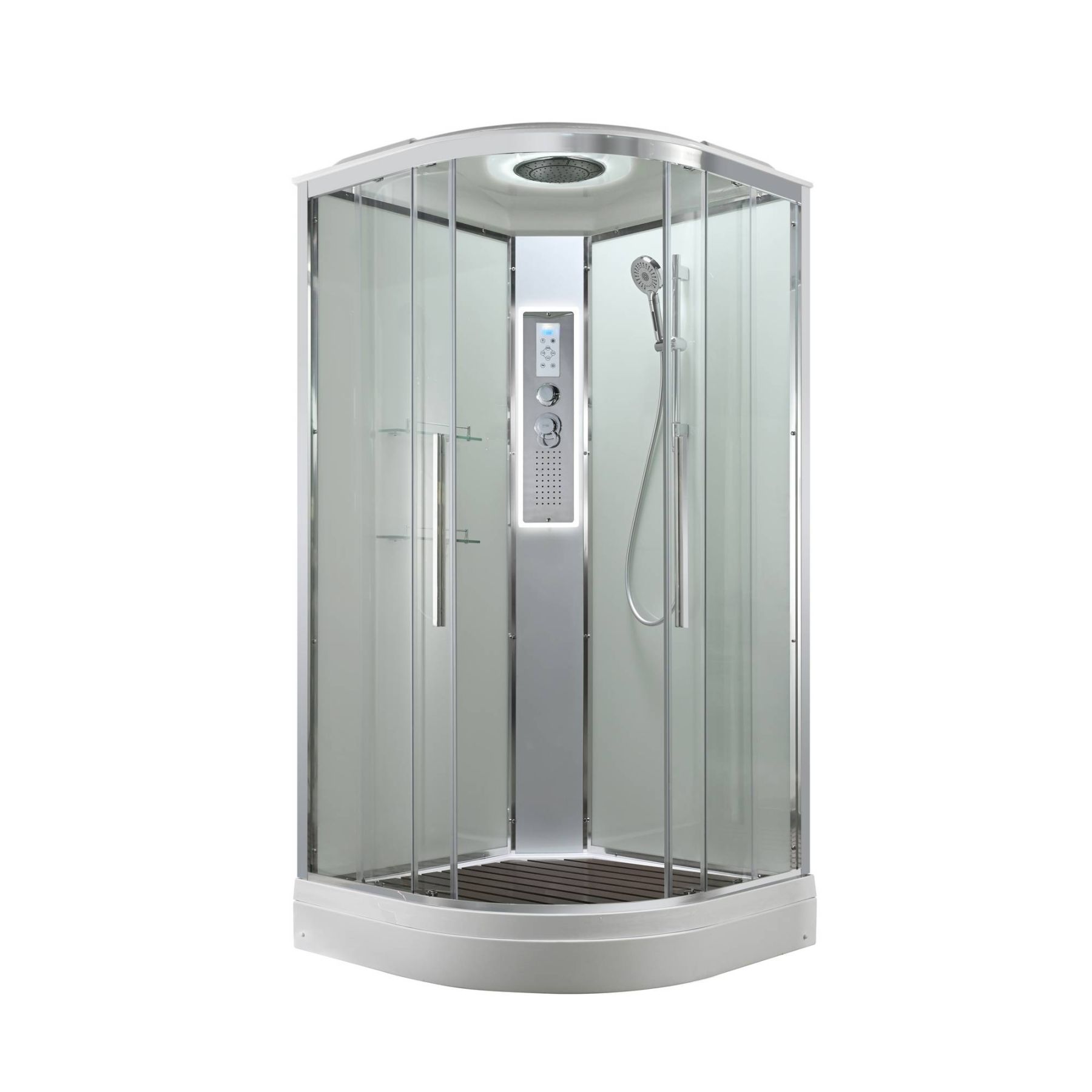 Стильная душевая кабина AvaCan EM2090LEDT сочетает в себе высокую функциональность, практичность и надежность. При изготовлении применяется безопасное закаленное стекло толщиной 5 мм (прозрачное), надежно фиксируемое алюминиевым профилем. Сборка без силикона (увеличивает срок службы), внутренняя сборка(облегчает установку и ревизию; позволяет установить в ограниченном пространстве), смеситель резьбовой (без хомутов). Съемный экран поддона (позволяет осуществлять ревизию сифона). Цвет профиля  хром. Двойные металлические ролики дверей (увеличивают срок службы).В комплекте : душевая штанга, две полочки , тропический (верхний) душ, арома-лейка с витамином С (картридж съемный),полимерная вставка в поддон(имитация дерева),сифон, ручки дверей из нержавейки , двойные ролики ,пульт сенсорный(Блютуз ,LED подсветка ,радио ,вытяжка),гидромассаж спины.