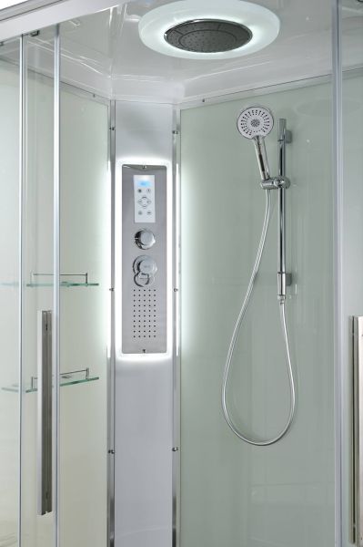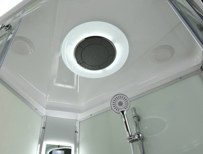Стильная душевая кабина AvaCan EM2811LLEDT сочетает в себе высокую функциональность, практичность и надежность. При изготовлении применяется безопасное закаленное стекло толщиной 5 мм (прозрачное), надежно фиксируемое алюминиевым профилем. Сборка без силикона (увеличивает срок службы), внутренняя сборка(облегчает установку и ревизию; позволяет установить в ограниченном пространстве), смеситель резьбовой (без хомутов). Съемный экран поддона (позволяет осуществлять ревизию сифона). Цвет профиля  хром. Двойные металлические ролики дверей (увеличивают срок службы).В комплекте : душевая штанга, две полочки , тропический (верхний) душ, арома-лейка с витамином С (картридж съемный),полимерная вставка в поддон(имитация дерева),сифон, ручки дверей из нержавейки , двойные ролики ,пульт сенсорный(Блютуз ,LED подсветка ,радио ,вытяжка),гидромассаж спины.