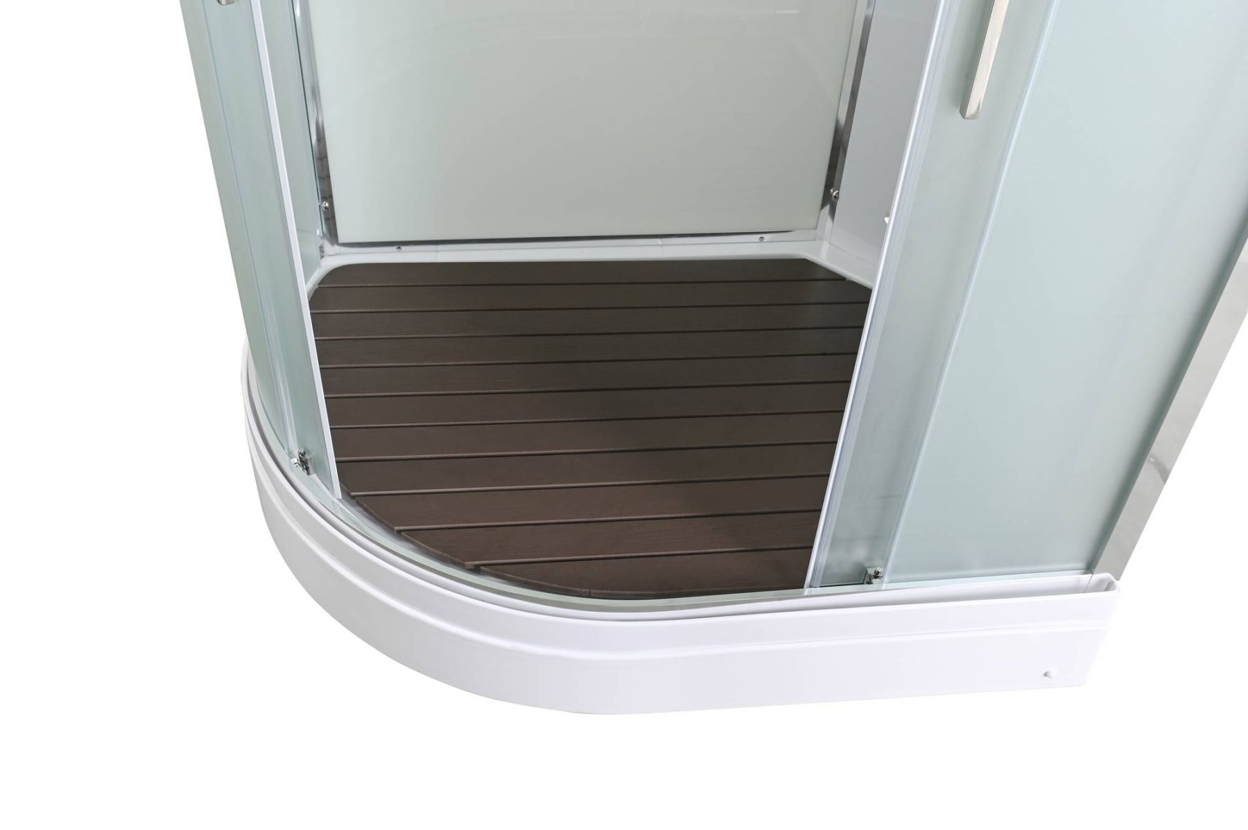 Стильная душевая кабина AvaCan EM2912R сочетает в себе высокую функциональность, практичность и надежность. При изготовлении применяется безопасное закаленное стекло толщиной 5 мм (матовое), надежно фиксируемое алюминиевым профилем. Сборка без силикона (увеличивает срок службы), внутренняя сборка(облегчает установку и ревизию; позволяет установить в ограниченном пространстве), смеситель резьбовой (без хомутов). Съемный экран поддона (позволяет осуществлять ревизию сифона). Цвет профиля  хром. Двойные металлические ролики дверей (увеличивают срок службы).В комплекте : душевая штанга, две полочки , тропический (верхний) душ, арома-лейка с витамином С (картридж съемный),полимерная вставка в поддон(имитация дерева),сифон, ручки дверей из нержавейки , двойные ролики .
