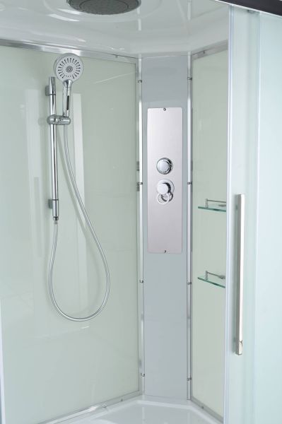 Стильная душевая кабина AvaCan сочетает в себе высокую функциональность, практичность и надежность. При изготовлении применяется безопасное закаленное стекло, надежно фиксируемое алюминиевым профилем. Профиль сделан из алюминия повышенной прочности. Сборка без силикона (увеличивает срок службы, защищает от протечек), внутренняя сборка (облегчает установку и ревизию; позволяет установить в ограниченном пространстве и обойтись без демонтажа других сантехнических приборов), смеситель резьбовой (без хомутов). Съемный экран поддона (позволяет осуществлять подключение и ревизию сифона).Двойные металлические ролики дверей (распределение нагрузки на два ролика, увеличивают срок службы). Душевая штанга(позволяет регулировать по высоте ручную лейку), ручная арома-лейка с витамином С (картридж в комплекте,есть возможность замены или удаления картриджа), полочки(из стекла, с ограничителем), сифон с гидрозатвором.
