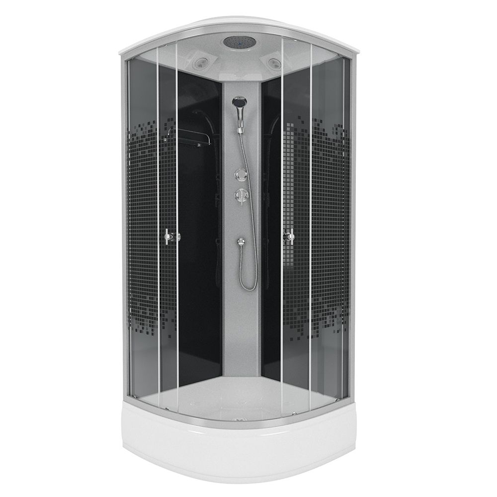 Душевая кабина Niagara Eco NG- 3504-14 BLACK идеально обеспечит не только комфортное проведение гигиенических процедур, но гармонично впишется в ваш интерьер. Душевую кабину просто установить, даже в компактную ванную комнату, при этом она элегантно впишется в любое интерьерное решение.Кабина Niagara Eco обладает формой четверти круга, шириной 90 см и глубиной 90 см, что сэкономит пространство для размещения других сантехнических предметов. Наличие крыши обеспечивает максимальную герметизации кабины, исключит излишнее попадание влаги на пол и стены. Средний пластиковый поддон у Niagara NG-3504-14 высотой 26 см оптимальное решение для любой ситуации. С узором исполнение стекол прекрасно подойдет в любой дизайнерский интерьер. Тропический верхний душ, создаст приятный эффект настоящего дождя. А встроенная система вентиляция устранит излишки влажности и создаст благоприятный микроклимат. Вход расположен спереди, что обязательно необходимо учесть при размещении кабины Niagara Eco.Китай, прослеживается во всех душевых кабинах Niagara. Они производятся со строгим соблюдением стандартов качества, и с использованием надежных, долговечных материалов. Душевая кабина Niagara Eco NG- 3504-14 BLACK внесет неповторимый вклад в дизайн-проект любой ванной комнаты, и сделает его не только практичным в плане функций, но и стильным с точки зрения эстетики.