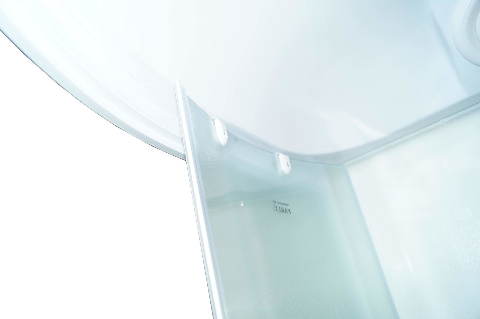 МОНТАЖ БЕЗ СИЛИКОНАКабина EF931 душевая PARLY (90х90х215)Размер: 90х90х210 смБюджетная компактная кабина – отличный выбор для маленькой ванной комнаты и дачи. Светлая кабина визуально расширяет пространство, а полукругла форма экономит полезную площадь в санузле.Достоинства: