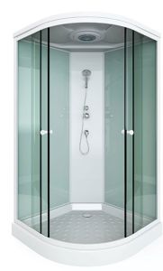 поддон низкий 15см фронтальные стекла : матовые фактурные задние стекла: белые матовые задняя панель: белый пластик белый алюминиевый профиль регулируемые ролики белые ручки для дверей 2- режимный смеситель ручная лейка слив с сифоном крыша с верхней лейкой