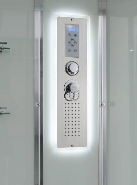 Стильная душевая кабина AvaCan сочетает в себе высокую функциональность, практичность и надежность. При изготовлении применяется безопасное закаленное стекло, надежно фиксируемое алюминиевым профилем.Профиль сделан из алюминия повышенной прочности. Сборка без силикона (увеличивает срок службы, защищает от протечек), внутренняя сборка (облегчает установку и ревизию; позволяет установить в ограниченном пространстве и обойтись без демонтажа других сантехнических приборов), смеситель резьбовой (без хомутов). Съемный экран поддона (позволяет осуществлять подключение и ревизию сифона).Двойные металлические ролики дверей (распределение нагрузки на два ролика, увеличивают срок службы). Душевая штанга(позволяет регулировать по высоте ручную лейку), ручная арома-лейка с витамином С (картридж в комплекте,есть возможность замены или удаления картриджа), полочки(из стекла, с ограничителем), сифон с гидрозатвором, сенсорный пульт управления с функциями: блютуз, LED подсветка, радио, вытяжка, гидромассаж спины, тропический (верхний) душ.