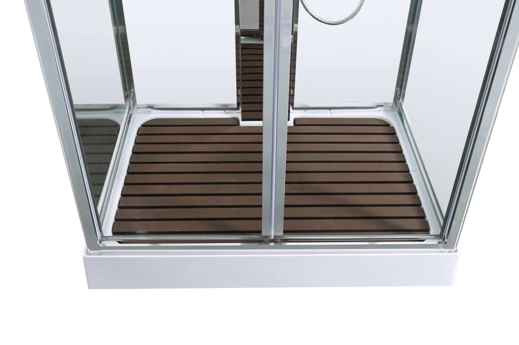 Стильная душевая кабина AvaCan сочетает в себе высокую функциональность, практичность и надежность. При изготовлении применяется безопасное закаленное стекло, надежно фиксируемое алюминиевым профилем.Профиль сделан из алюминия повышенной прочности. Сборка без силикона (увеличивает срок службы, защищает от протечек), внутренняя сборка (облегчает установку и ревизию; позволяет установить в ограниченном пространстве и обойтись без демонтажа других сантехнических приборов), смеситель резьбовой (без хомутов). Съемный экран поддона (позволяет осуществлять подключение и ревизию сифона).Двойные металлические ролики дверей (распределение нагрузки на два ролика, увеличивают срок службы). Душевая штанга(позволяет регулировать по высоте ручную лейку), ручная арома-лейка с витамином С (картридж в комплекте,есть возможность замены или удаления картриджа), полочки(из стекла, с ограничителем), сифон с гидрозатвором, сенсорный пульт управления с функциями: блютуз, LED подсветка, радио, вытяжка, гидромассаж спины, тропический (верхний) душ.