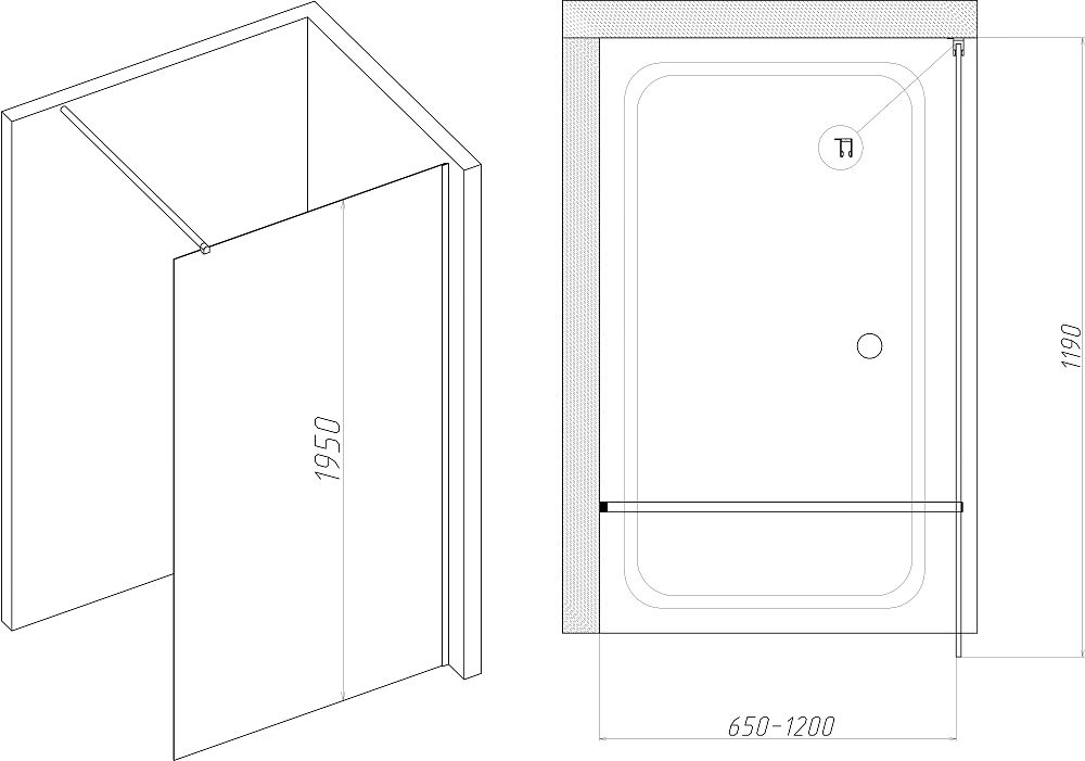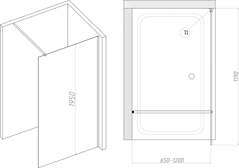 Душевая перегородка DIWO Орёл 120 см, профиль хром матовый