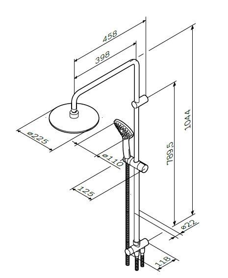 - Размер верхнего душа, см:22