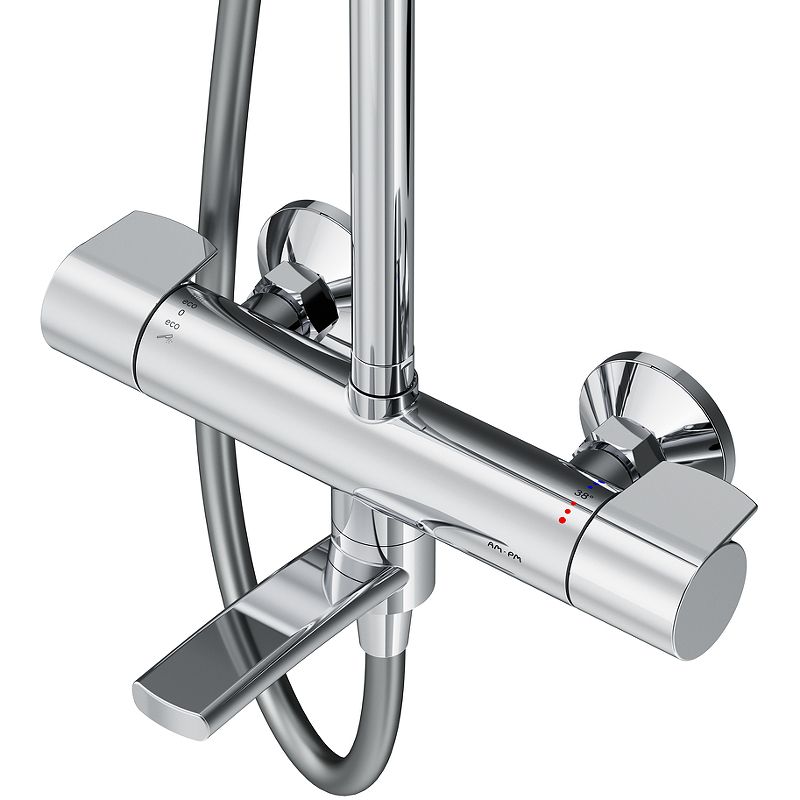 Новое прочтение культовой коллекции X-Joy. Еще больше инновационных решений для вашей ванной комнаты. Трендовые формы, технологичные материалы и продуманные детали, которые теперь доступны каждому. По самой привлекательной цене. Благодаря специально спроектированной эргономичной ручке вы можете управлять душевой системой даже с мыльными руками. Термостатический картридж с высокочувствительным термоэлементом и быстрой реакцией на изменения температуры или давления надежно защищает от ожога даже при внезапном отключении холодной воды. Телескопическая штанга с диапазоном регулировки 400 мм сделает процесс принятия душа удобным для людей любого роста. А благодаря увеличенным размерам тропического (228 мм) и ручного (120 мм) душей вы ощутите все преимущества использования дизайнерского продукта. Душевая система X-Joy была создана для того, чтобы радовать вас каждый день.