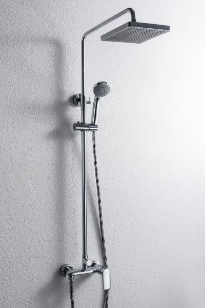 Душевая стойка для ванны Bravat Opal с большим квадратным верхним душем и смесителем без излива. Серия известна не только своим качеством, но и высоким уровнем эргономики.