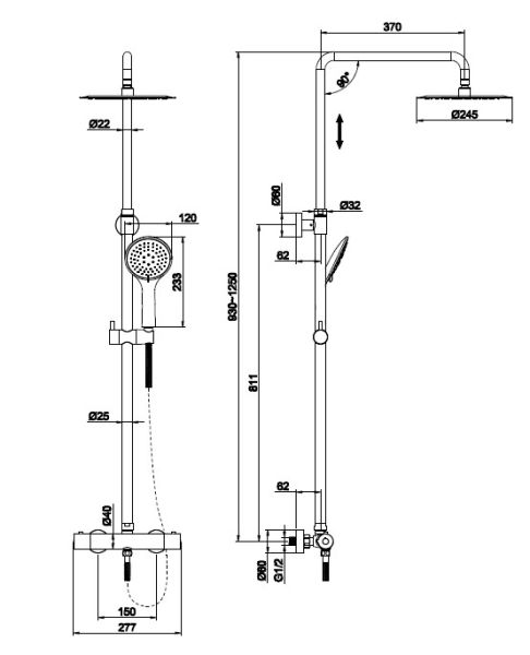 Душевая система Cersanit BRASKO BLACK 63112 с термостатом
