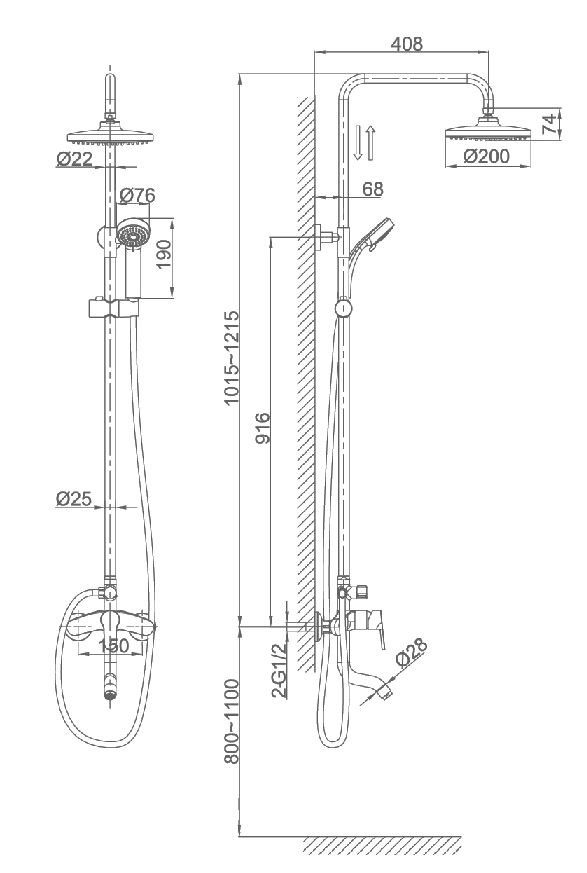 • Размер верхнего душа, см: