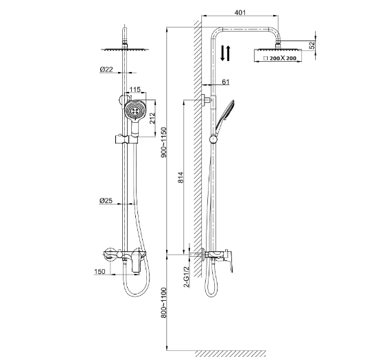 • Размер верхнего душа, см: