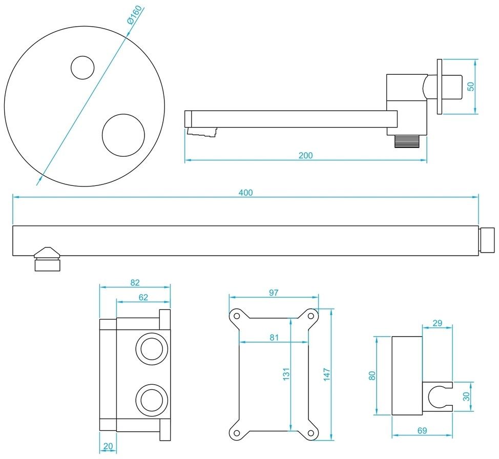 - Размер верхнего душа, см:25