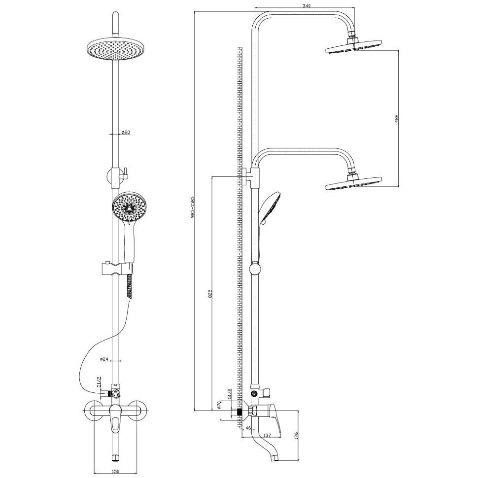 - Размер верхнего душа, см:20