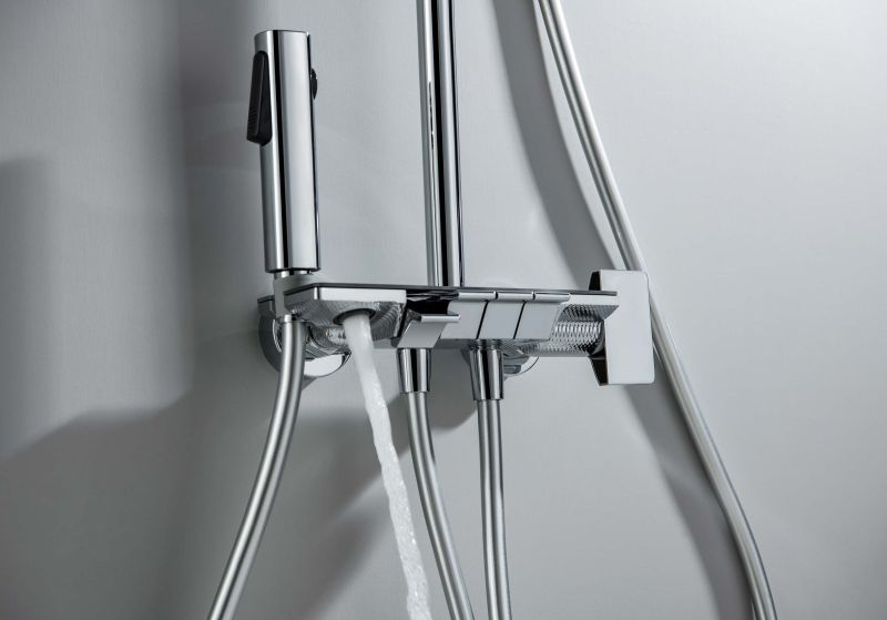 Одной из ключевых особенностей является скрытый излив, который придает системе современный и минималистичный вид, освобождая пространство и создавая ощущение легкости. Регулируемая душевая штанга из нержавеющей стали выдвигается до 1340 мм в высоту, что позволяет легко настроить ее под индивидуальные предпочтения каждого пользователя.