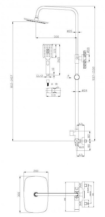 Оснащение: эксцентрики, дивертор, душевой шланг, душевая лейка, верхний душ