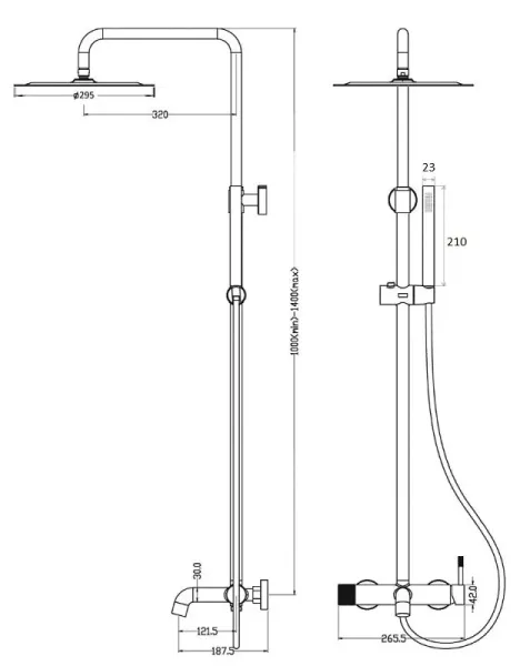 • Верхний душ