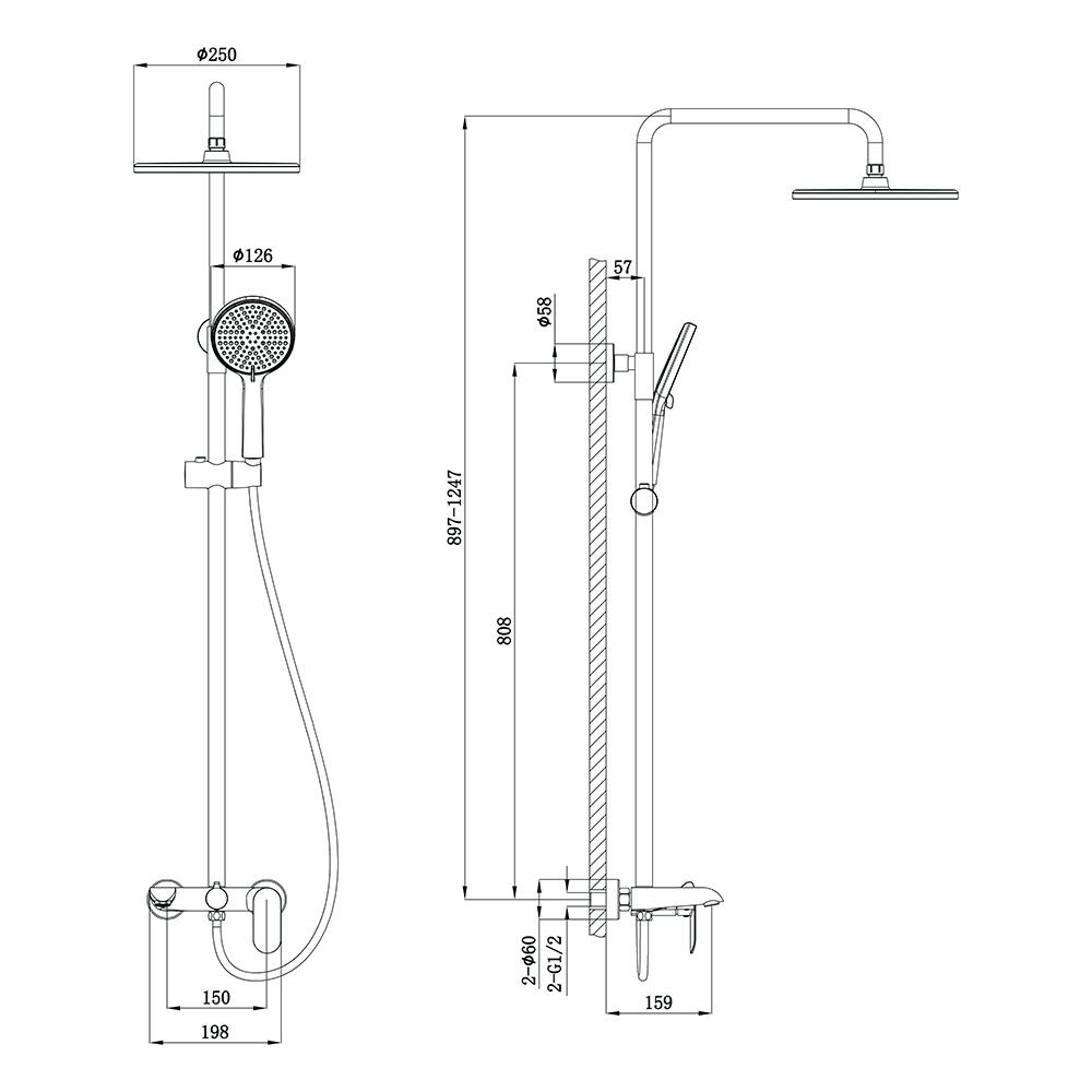 Душевая стойка FERRI, графит брашинг