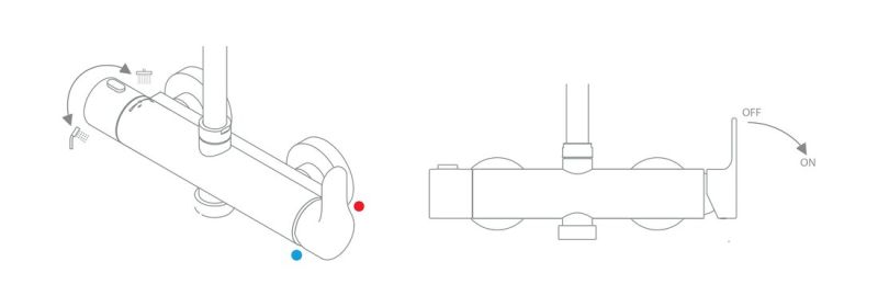 конструкция смесителя: CoolFeel - регулятор температуры слева уменьшает чрезмерный нагрев поверхности смесителя