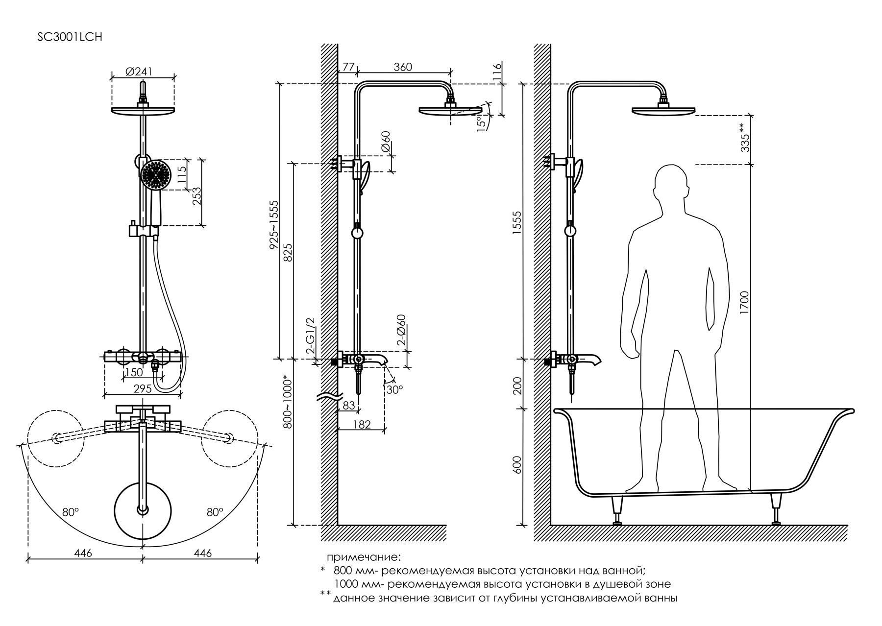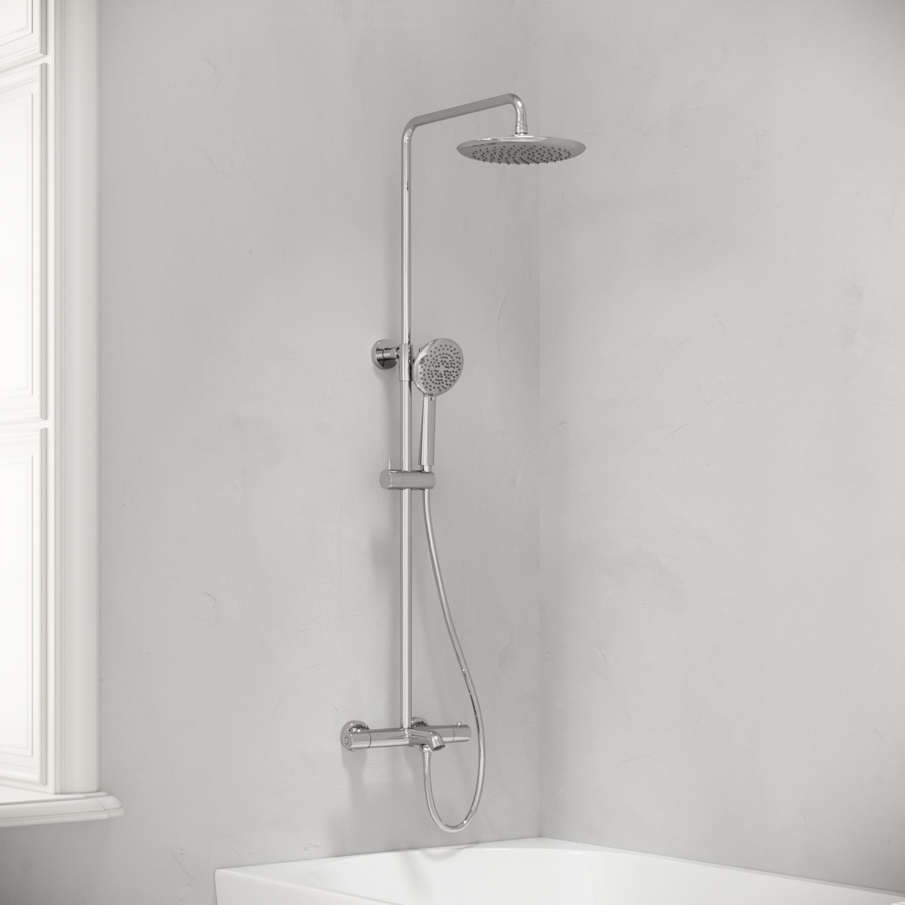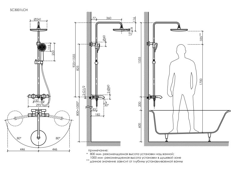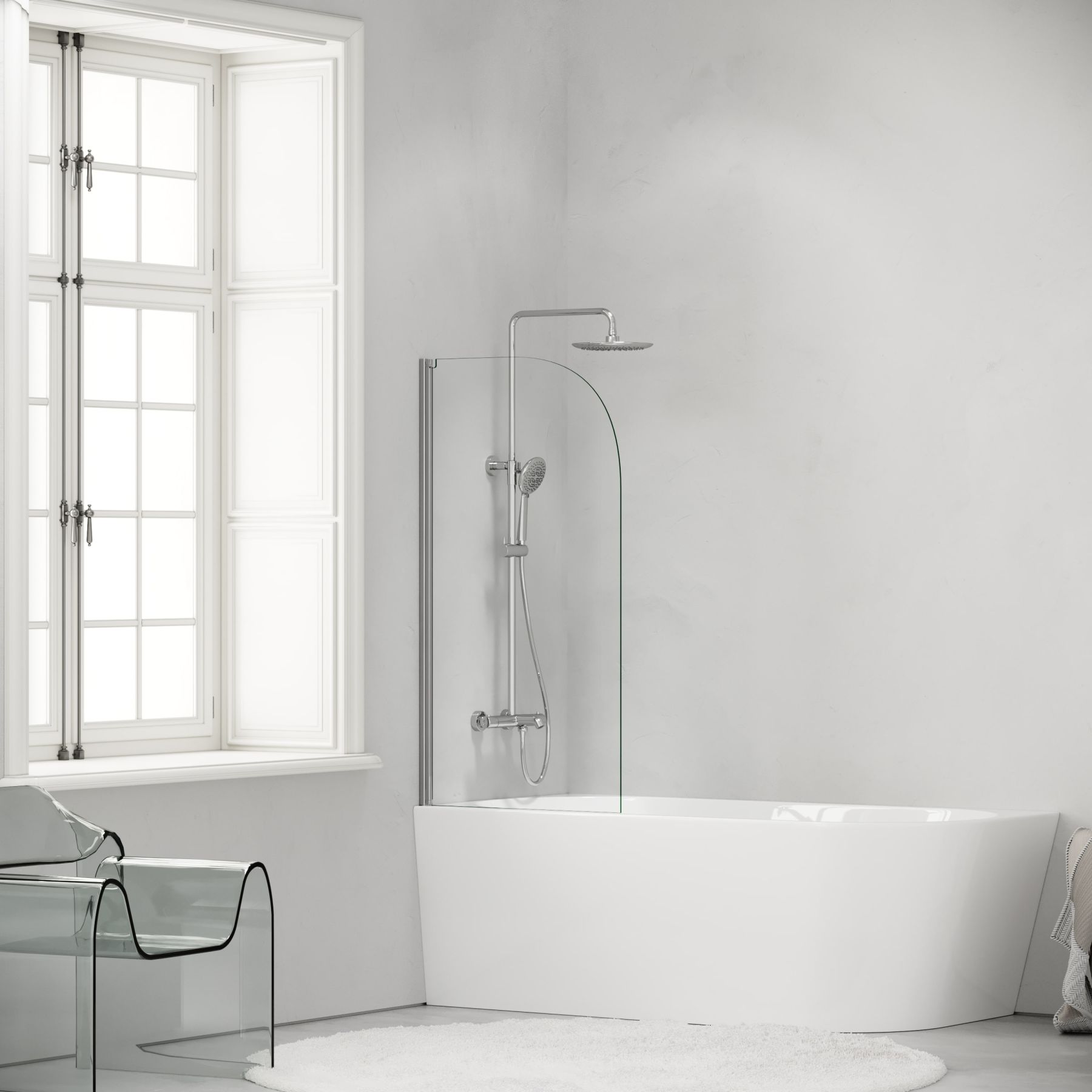 - Подходит для установки над ванной и в душевую зону