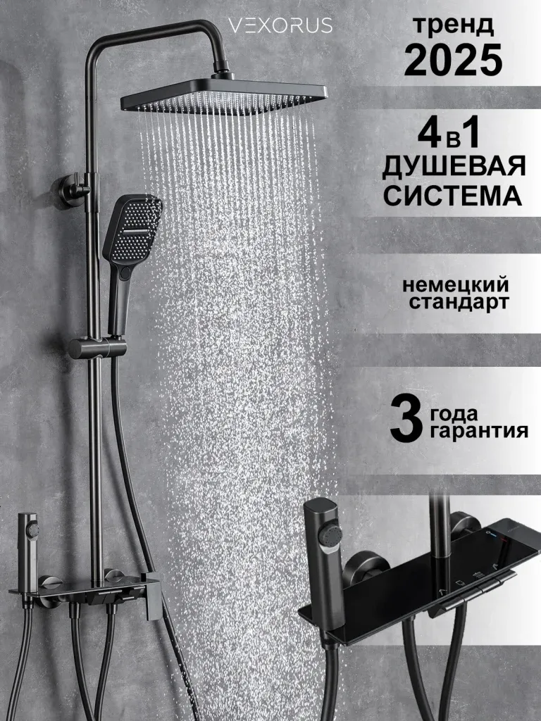 Душевая система с краном бренда Vexorus - это идеальный выбор для тех, кто ценит качество, стиль и комфорт. Представленное оборудование является надежным и долговечным, что позволяет использовать его на протяжении многих лет.