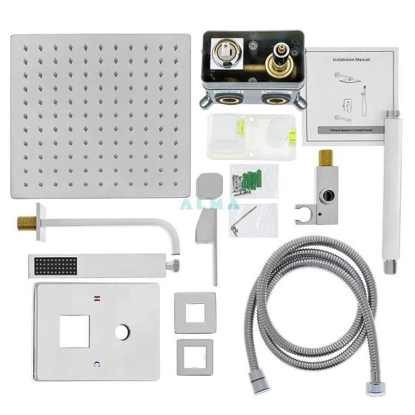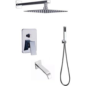 В правильно выполненном дизайне ванной комнаты нет ни одной лишней детали. Душевая система- это не только высококачественные современные технологии, это стильный дизайн и возможность добавить интересный акцент. Например, выбрав элегантный Душевой комплект со смесителем, 3 режима, Душ для тех, кто ценит каждый момент своей жизни. Комплектация: ? Плоский, широкий (каскадный) излив латунь 20 см. ? Верхняя лейка нержавеющая сталь размер 25*25 см. ? Длинна верхнего кронштейна 40 см. ? Шланг 150 см. ? Лейка ручная нержавеющая сталь ? Встраиваемый смеситель, материал латунь ? Глубина его погружения в стену 8 см.