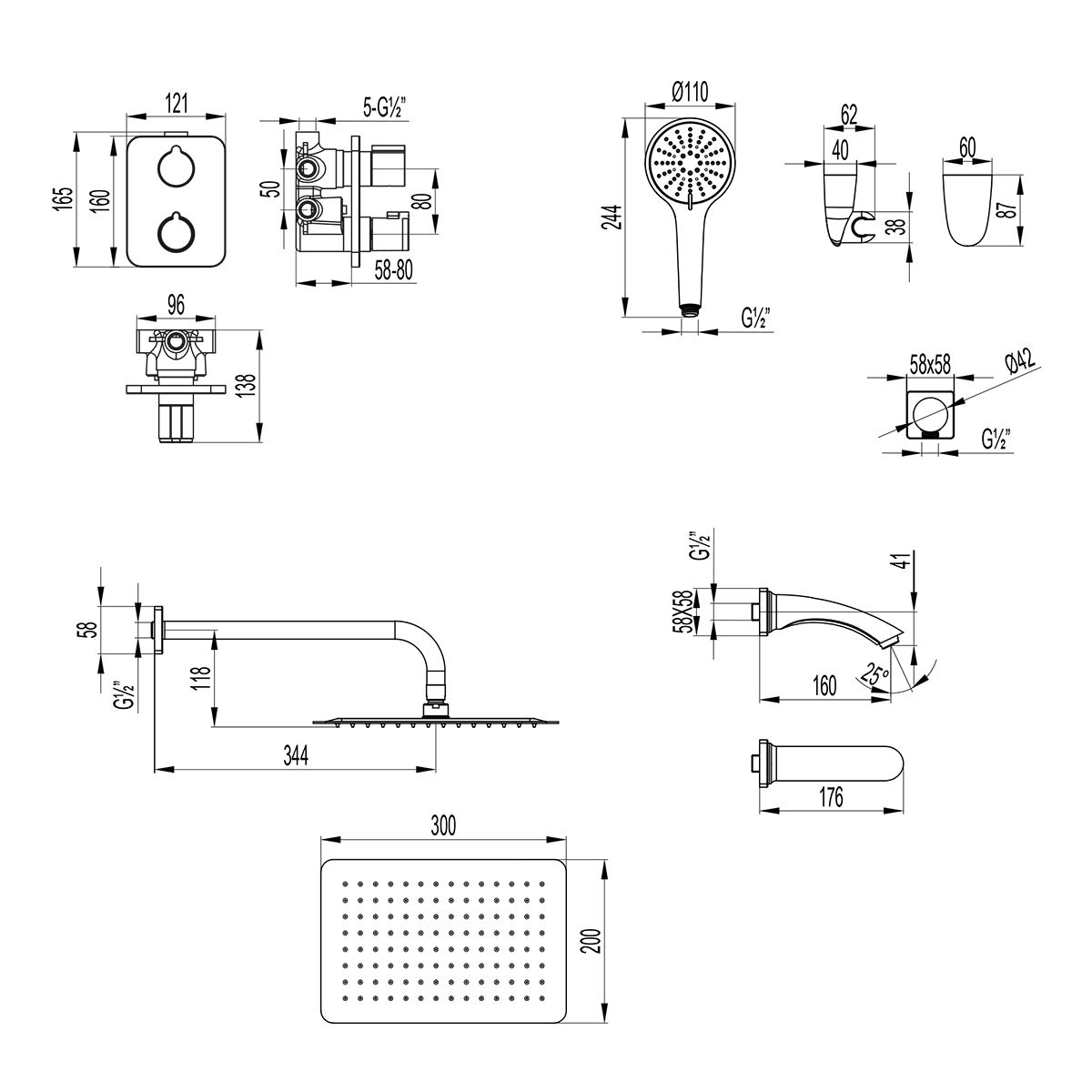- Размер верхнего душа, см:30