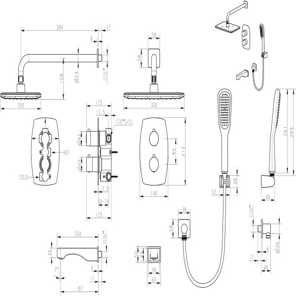 Душевой комплект Lemark Ursus LM7242BL с термостатом чёрный купить