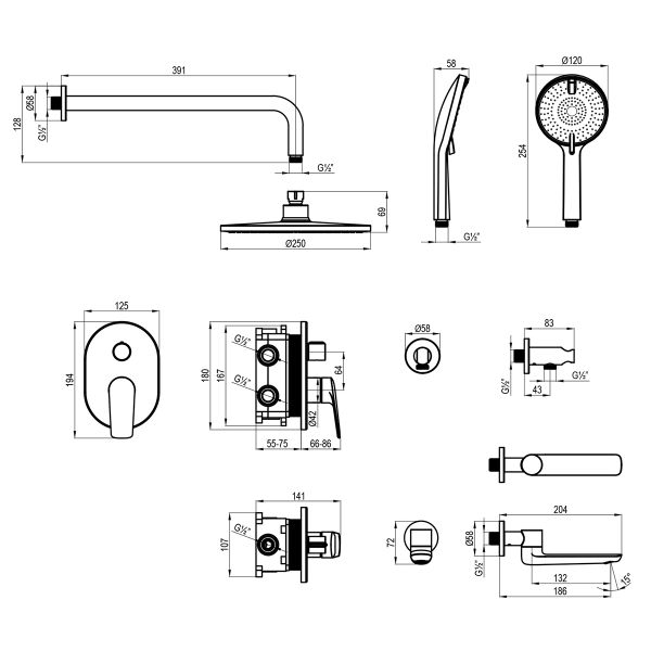 - Верхняя поворотная душевая лейка «Тропический дождь» Ø250 мм