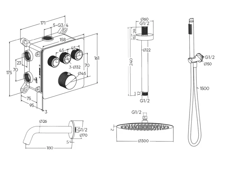 Душевой комплект Milleau Tissage TERMO 3SBIT/802Q-CR хром