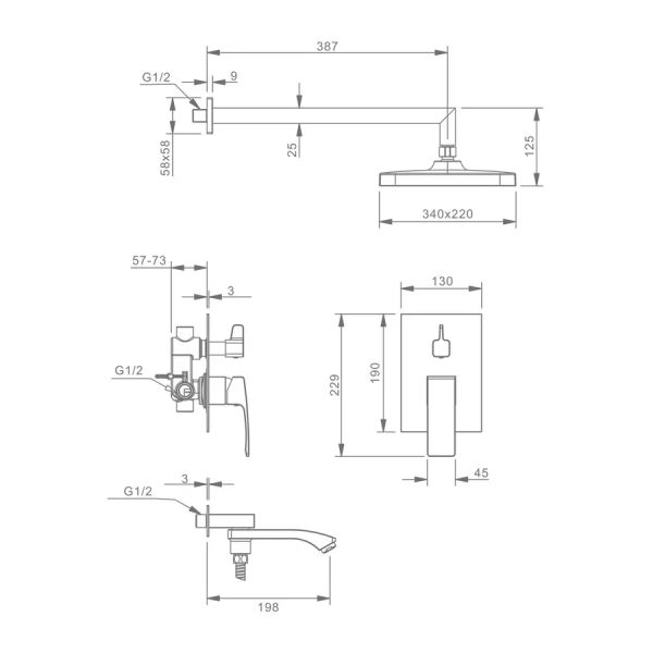 - Размер верхнего душа, см:34