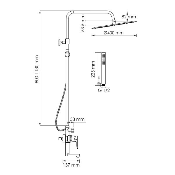 Стойка для душа, Ø 22 мм регулируемая по высоте