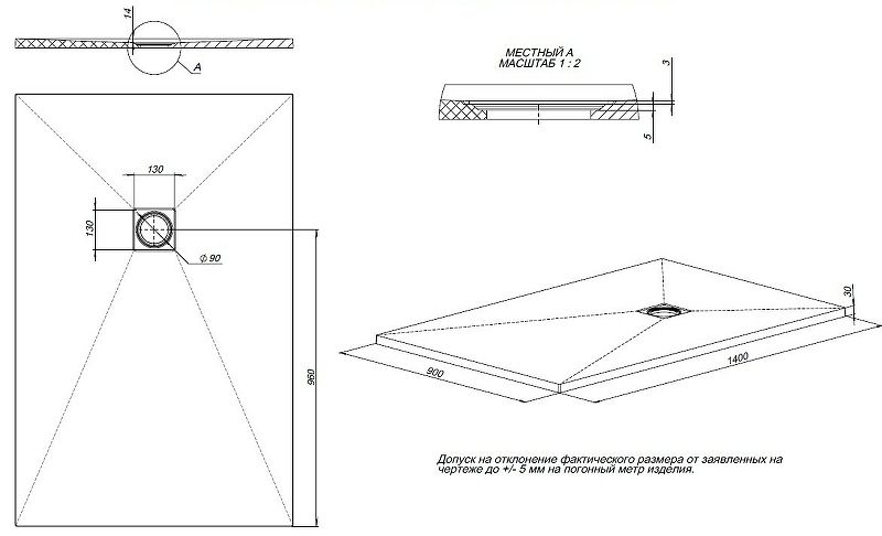 Размеры (ШхВхД): 1400х30х900 мм.