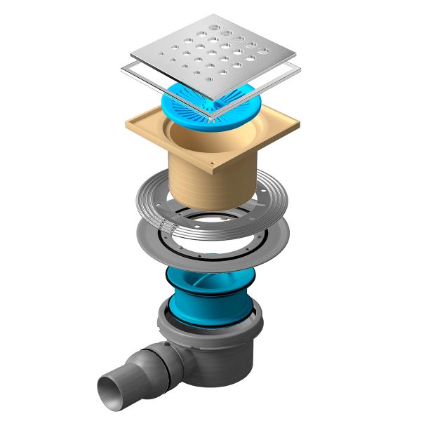 "Решетка: металл с перфорацией "Хром глянец". Базы: 1 - с 1 выходом, 4- S-образный сифон. Материалы: решетка - нержавеющая сталь AISI 304 SS, корпус, сифон - PP. Размеры решетки 100х100 мм и 150х150 мм, пропускная способность 48 л/мин, D=50 мм, поворот базы 360°, минимальная высота монтажа - 78 мм (для базы 2,3), 69 мм (для базы VERTICAL), гидрозатвор. Mask - с рамкой"