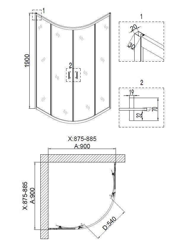 Форма: 1/4 круга