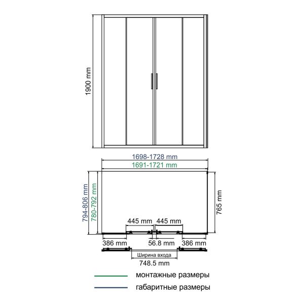 Душевой уголок Wasserkraft Lippe 45S 45S53 170х80 см хром купить