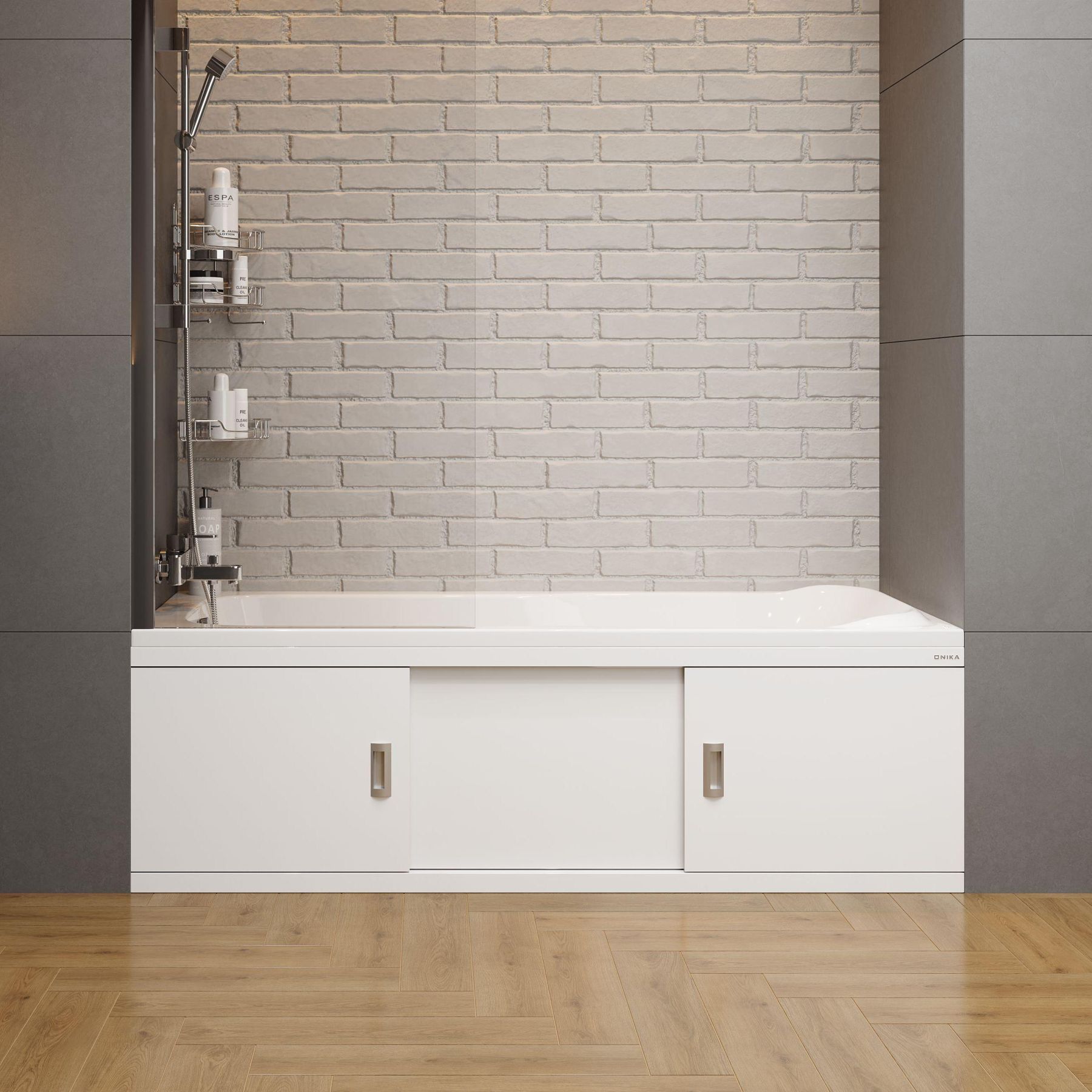 Экран Onika обладает повышенной износостойкостью, отлично переносит эксплуатацию в помещении с высокой влажностью и хорошо сочетается с любыми ваннами.