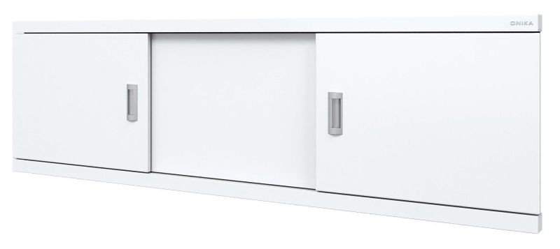 Конструкция имеет три подвижные раздвижные двери из МДФ, покрытых высокоглянцевой белой пленкой. Две боковые дверцы с врезными хромированными металлическими ручками.