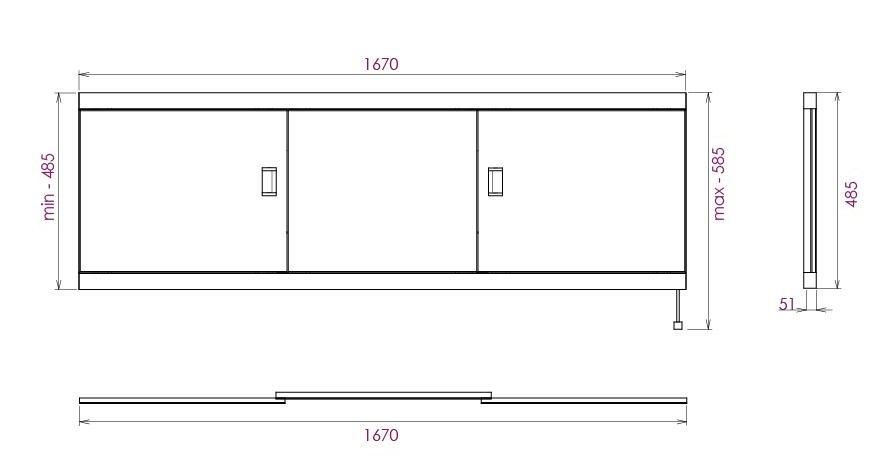 Ножки позволяют регулировать экран по высоте от 52 до 60 см, благодаря этому экран является универсальным и впишется в интерьер любой ванной комнаты.
